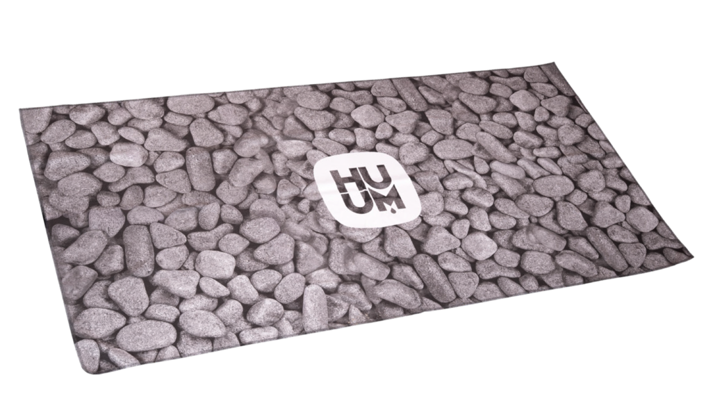 The HUUM towel with a stone pattern combines practicality with distinctive design. Lightweight and quick-drying microfiber makes it perfect for sauna, spa, or travel.