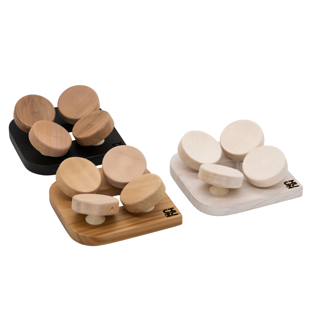 Crafted from natural red cedar or aspen, the headrest highlights the beauty of visible wood grain while offering durability in the warm sauna environment. The softly shaped wooden pads provide comfortable support, while the base plate creates a stable and refined structure.